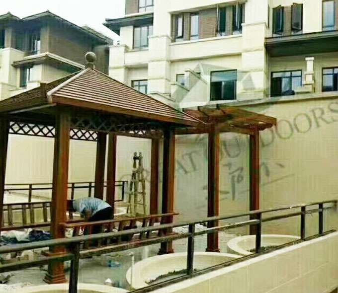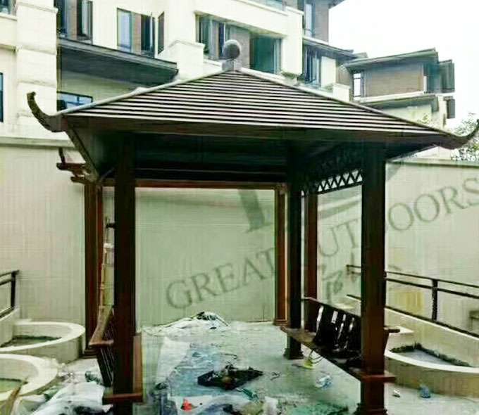 厦门维安绿色农业发展有限公司凉亭系列产品是采用高强度铝合金为原材料,经酸洗铬化,电泳或静电喷涂,木纹转印处理后,精密定制设计,保障安装。它具有防水防潮,不膨胀不变形,防腐蚀,具有逼真的木质感。成为别墅住宅及市政园林等建筑美丽的风景。