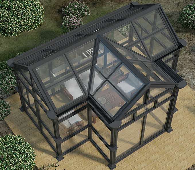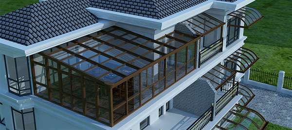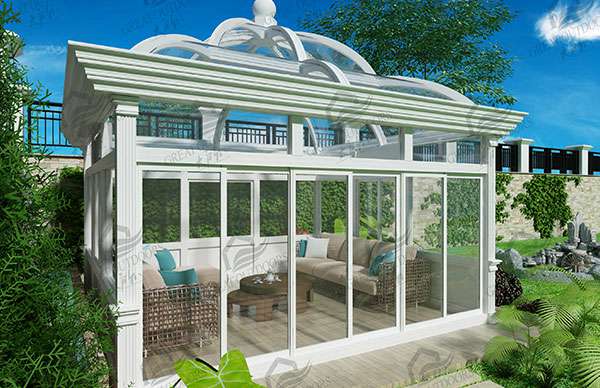 铝合金结构专有断桥隔热保温专利技术,结合Low-E玻璃传热系数低和反射红外线的特点,打造一座环保的阳光房。